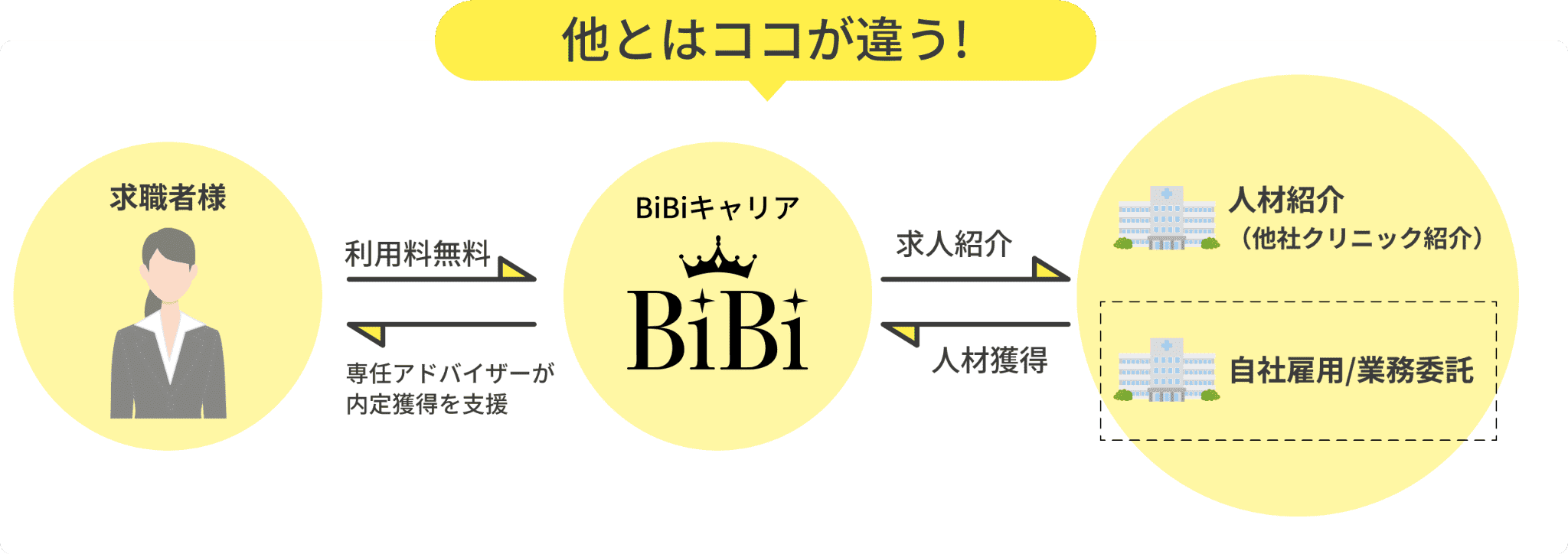 BiBiキャリアは「自社雇用」や「業務委託」など求人紹介以外の選択肢もある点が強みです。